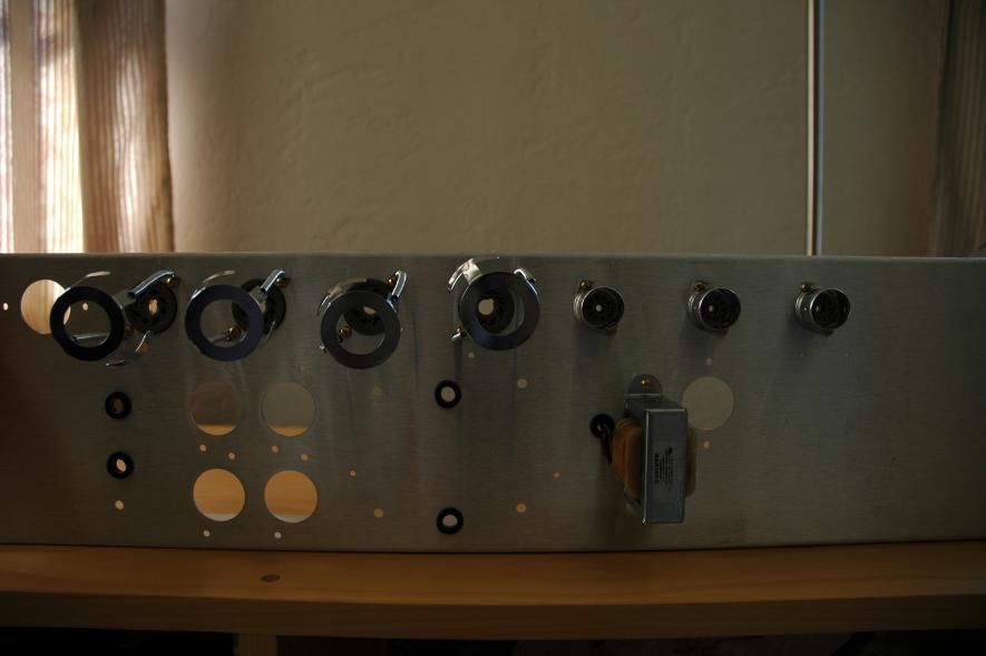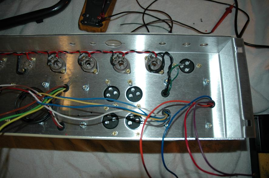 Text Box: Some basic socket wiring is done here, and the output transformer is wired to the impedance selector.