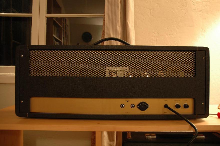 Text Box: This is a Jus-Tone-built Metropoulos 1969 Super Lead.  The circuit is an exact replica of a 1969 Marshall Super Lead, the last of the “plexi” era amps and THE signature sound of just about every 70s rock album.
